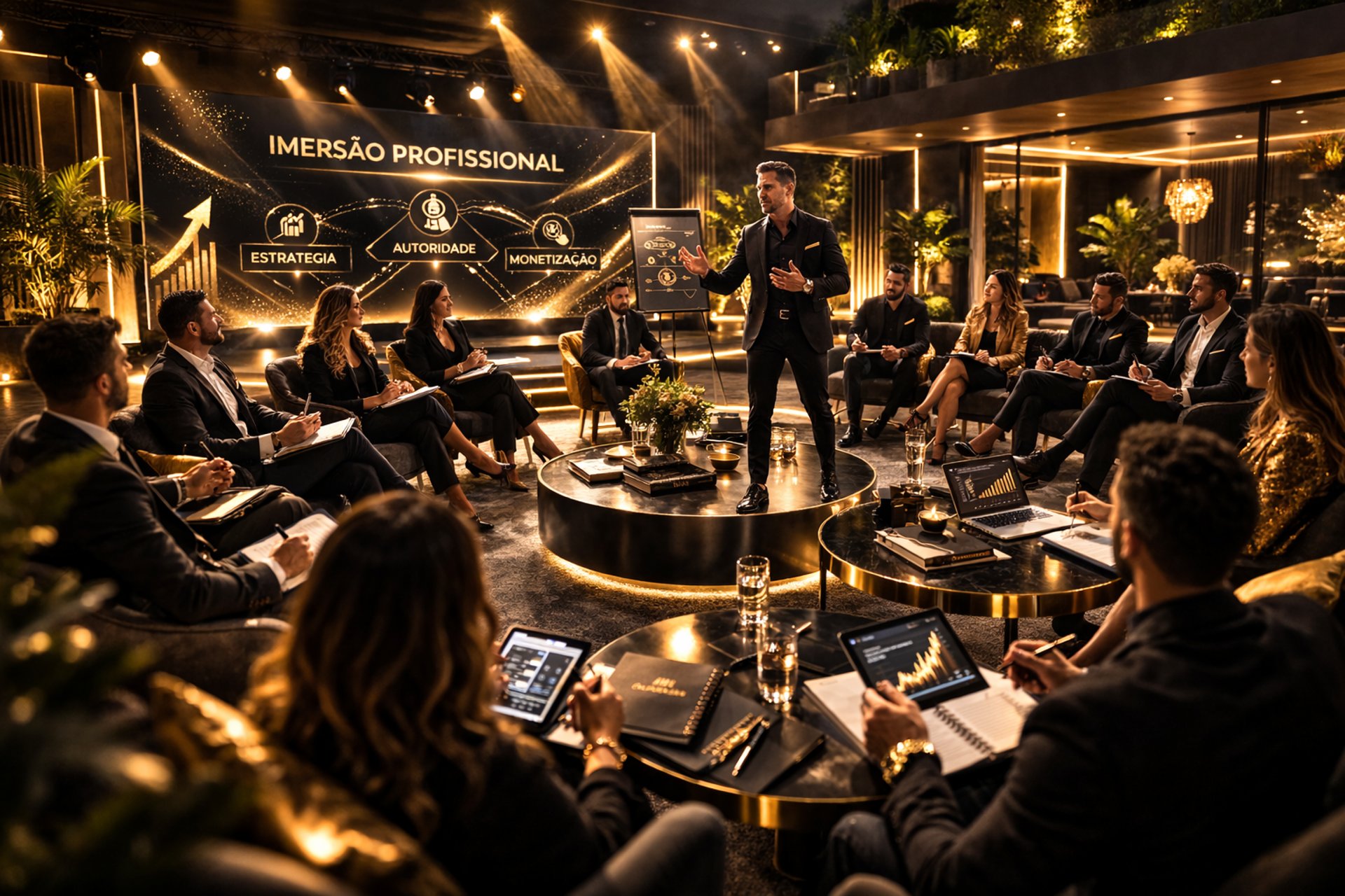 O IMERSÃO360 transforma especialistas em arquitetos de experiências vivenciais capazes de gerar transformação profunda, impacto emocional e alta percepção de valor. Você deixa de organizar eventos baseados apenas em conteúdo e passa a construir jornadas intensas, com narrativa estratégica, simulações reais, tensão controlada e mudança comportamental imediata. Ao final da formação, você será capaz de estruturar imersões que não apenas informam, mas fazem o participante viver a transformação dentro de um ambiente cuidadosamente desenhado para provocar ação, decisão e reposicionamento profissional.