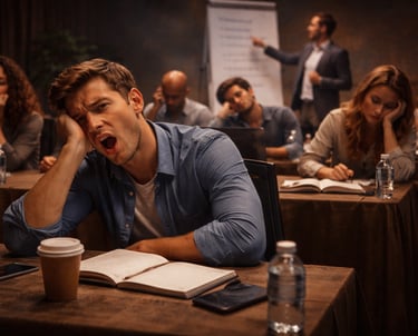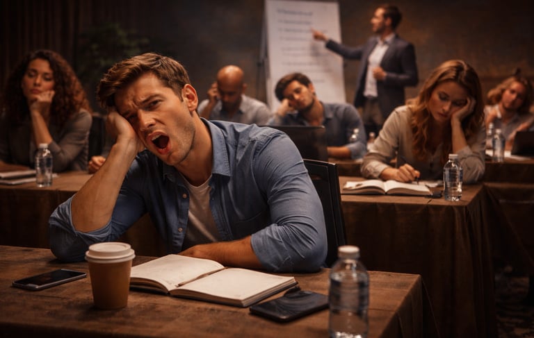 O mercado está saturado de cursos presenciais com nomes sofisticados que não passam de aulas longas, eventos com palestrantes em sequência e retiros sem arquitetura estratégica. Muitos chamam de imersão aquilo que é apenas conteúdo concentrado. O participante sai inspirado, mas não transformado. Ele aprende, mas não vive. Escuta, mas não executa. A verdadeira dor não é falta de informação, mas falta de experiência prática intensa o suficiente para quebrar padrões e instalar novos comportamentos. Sem narrativa, sem tensão e sem simulação realista, não há mudança duradoura — apenas motivação temporária.